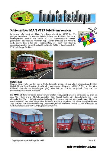 №1097 - Автомотриса Schienenbus MAN VT23 Jubiläumsversion (Mondorfer Bastelbogen) из бумаги