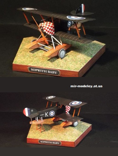 №11344 - Легкий вспомогательный гидросамолет Sopwith Baby N-2071 (Paperdiorama) из бумаги