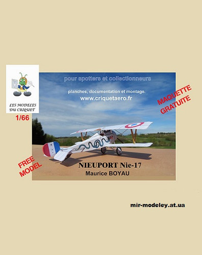 №11839 - Истребитель Nieuport 17 de Maurice BOYAU (Criquet) из бумаги