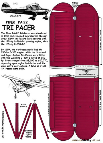 №12362 - Piper PA-22 - TRIPACER (Fiddlers Green) из бумаги