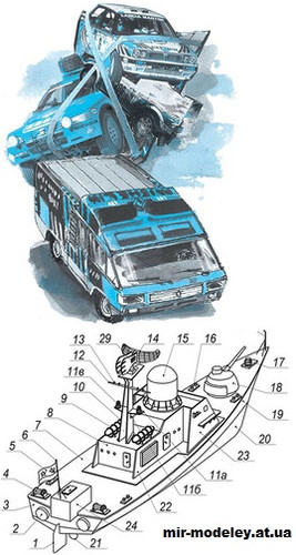 №15029 - Рено трафик + пограничный катер Финист (Левша 2024-05) из бумаги