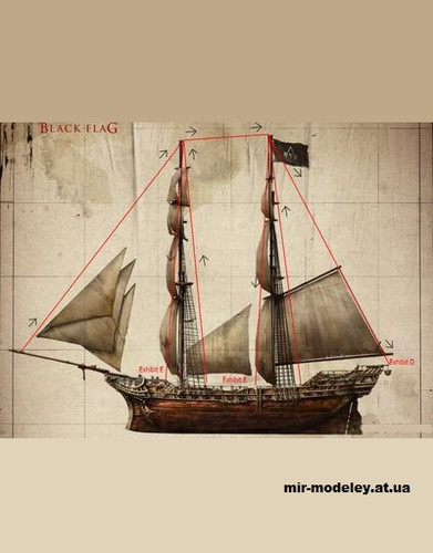 №12700 - Пиратский бриг «Черный сокол» / Pirate ship Black falcon (Modelis ir Erdve 18) из бумаги