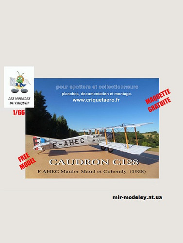 №1678 - Спортивный, учебно-тренировочный самолет Caudron C128 F-AHEC (Criquet) из бумаги