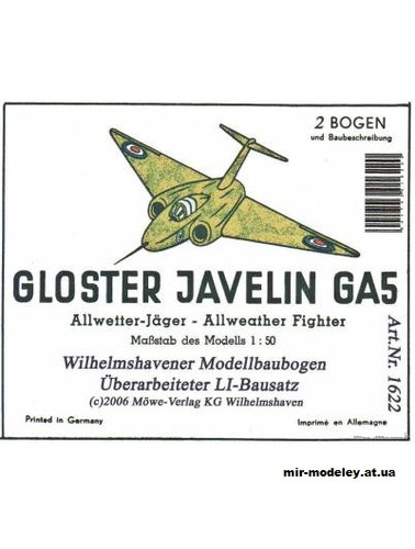 №2169 - Всепогодный перехватчик Gloster Javelin GA5 (WHM 1622) из бумаги