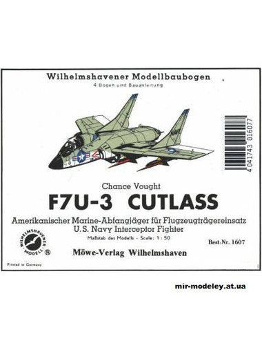 №2193 - Палубный истребитель F7U-3 Cutlass (WHM 1607) из бумаги