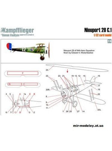№2747 - AoE Rickenbacker Nieuport 28 (перекрас Kampfflieger) из бумаги