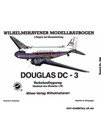 №5698 - Ближнемагистральный транспортный самолёт Douglas DC-3 [WHM 1506] из бумаги