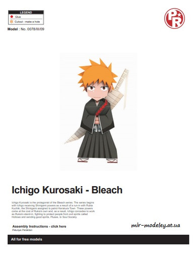 №6404 - Ichigo Kurosaki - Bleach (Paper-Replika) из бумаги