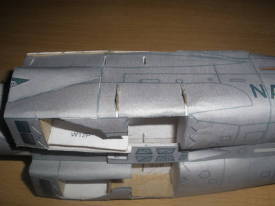 Доклеил, не знаю как их правильно назвать, лопухи. От варианта с лестницей, после размышлений отказался - не придумал как малой кровью сделать ее складывающейся, так сказать нет пока соответсвующих скиллов. Ну и верхнюю часть фюзеляжа. Сходимость радует, еще бы руки поровнее.