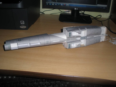 Может и не по канонам, начал с силовой установки. Грязновато выглядит, но это от утюга, когда на картон наклеивал.