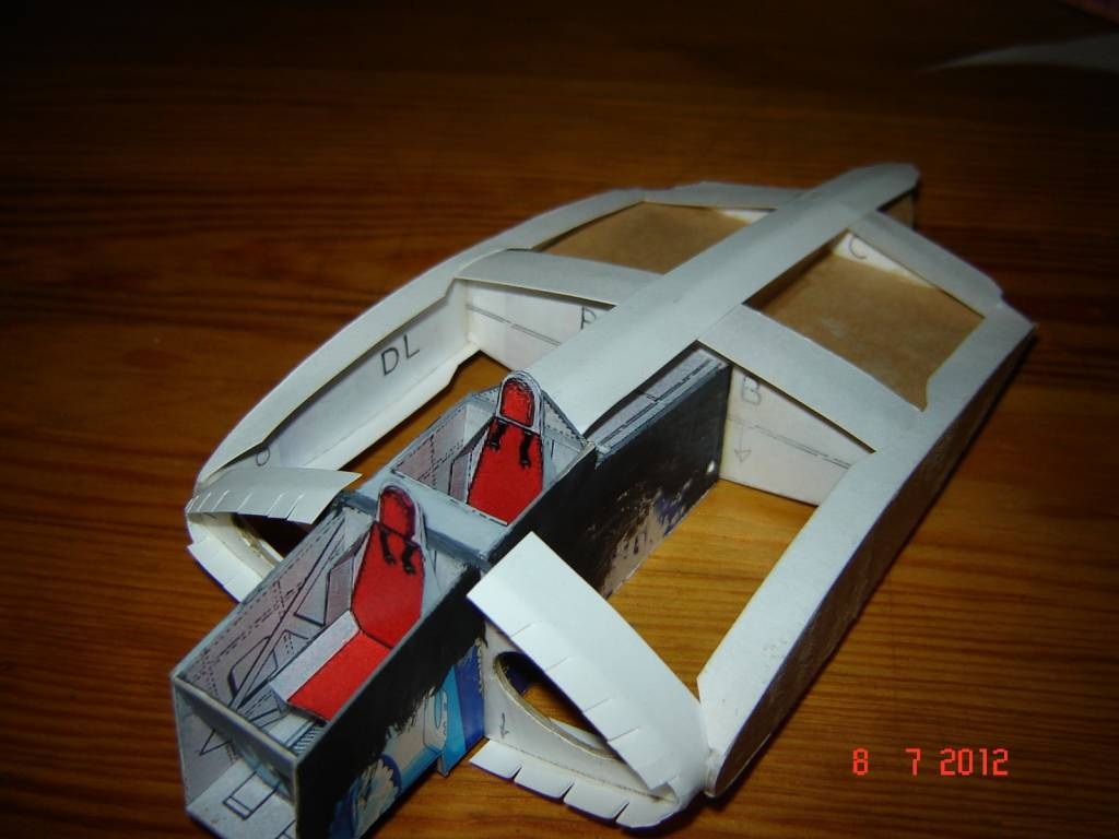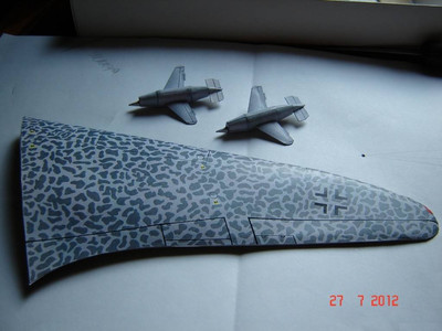Собрал весь центроплан, косяков хватает (немного опечалился),- верхняя шкурка короче на 2-4 мм, все видно на фото. Но и с косяками птичка очень нравиться своим "передовизмом".