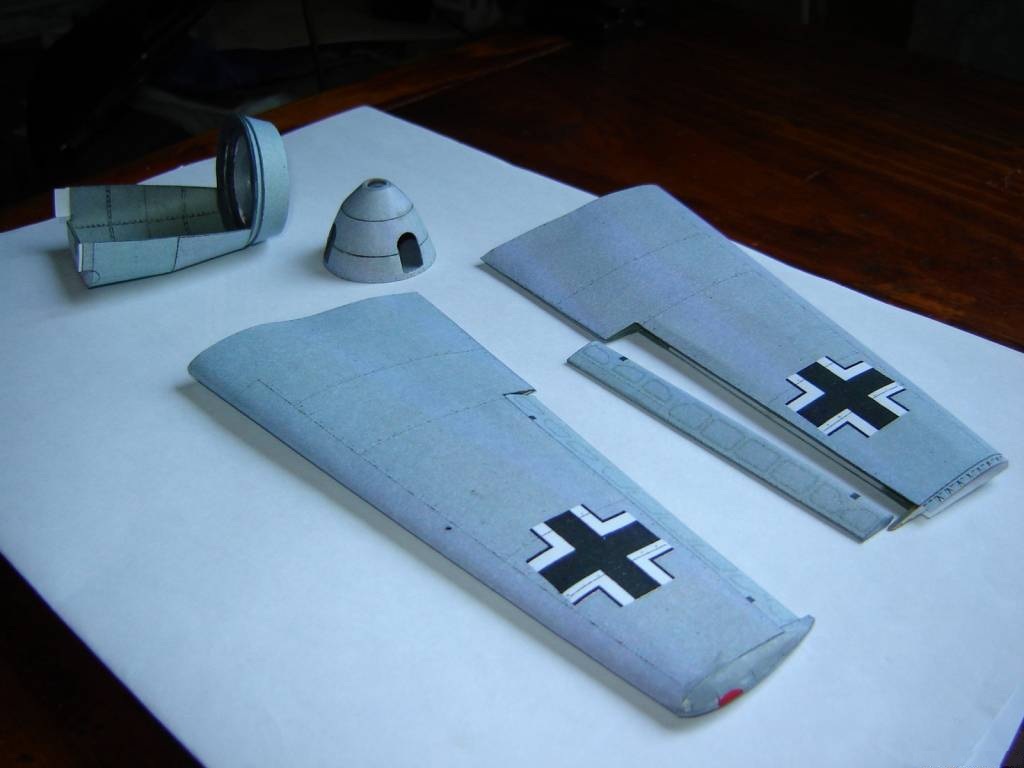 Сделал кок винта, крылья с элеронами, нижнюю часть капота движка, которая , в отличие от набора, будет приклеена.