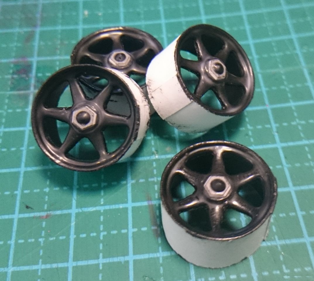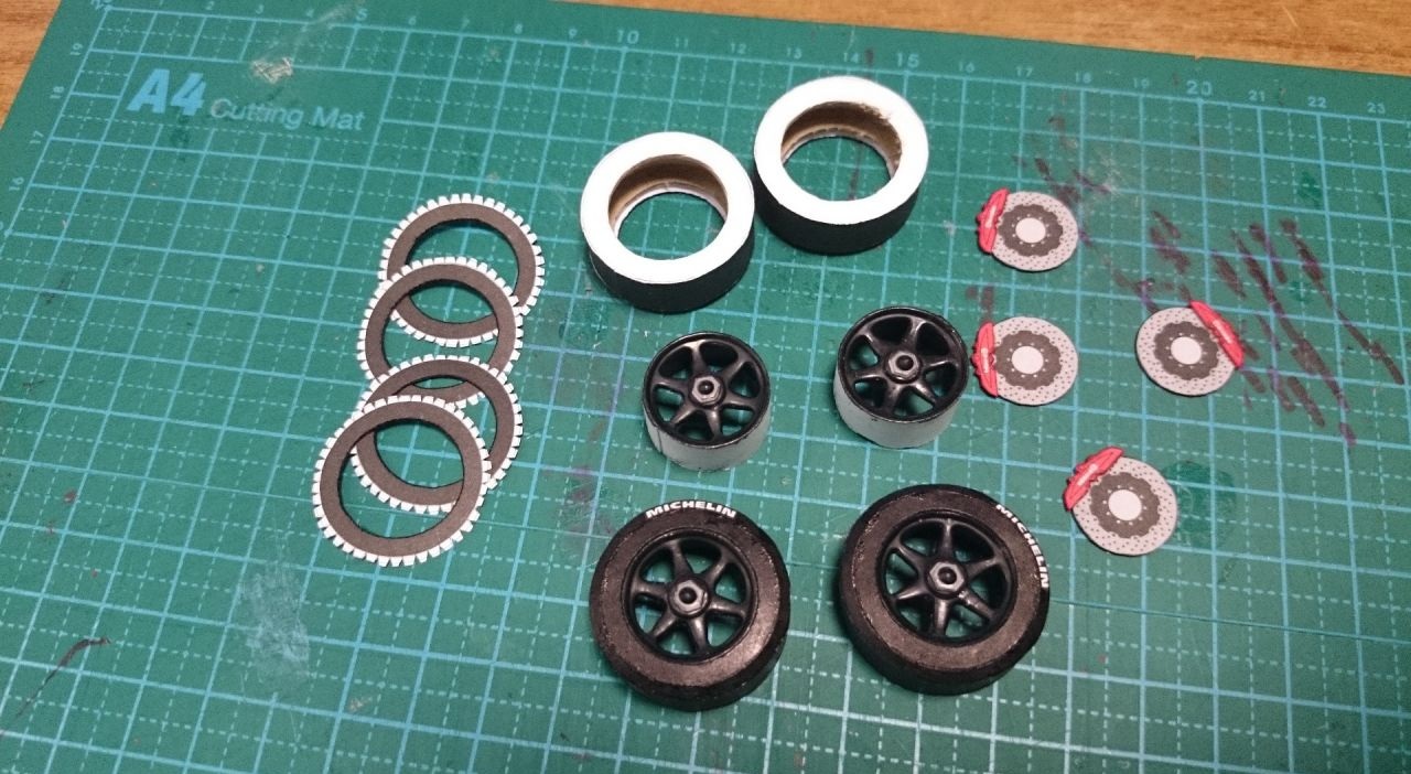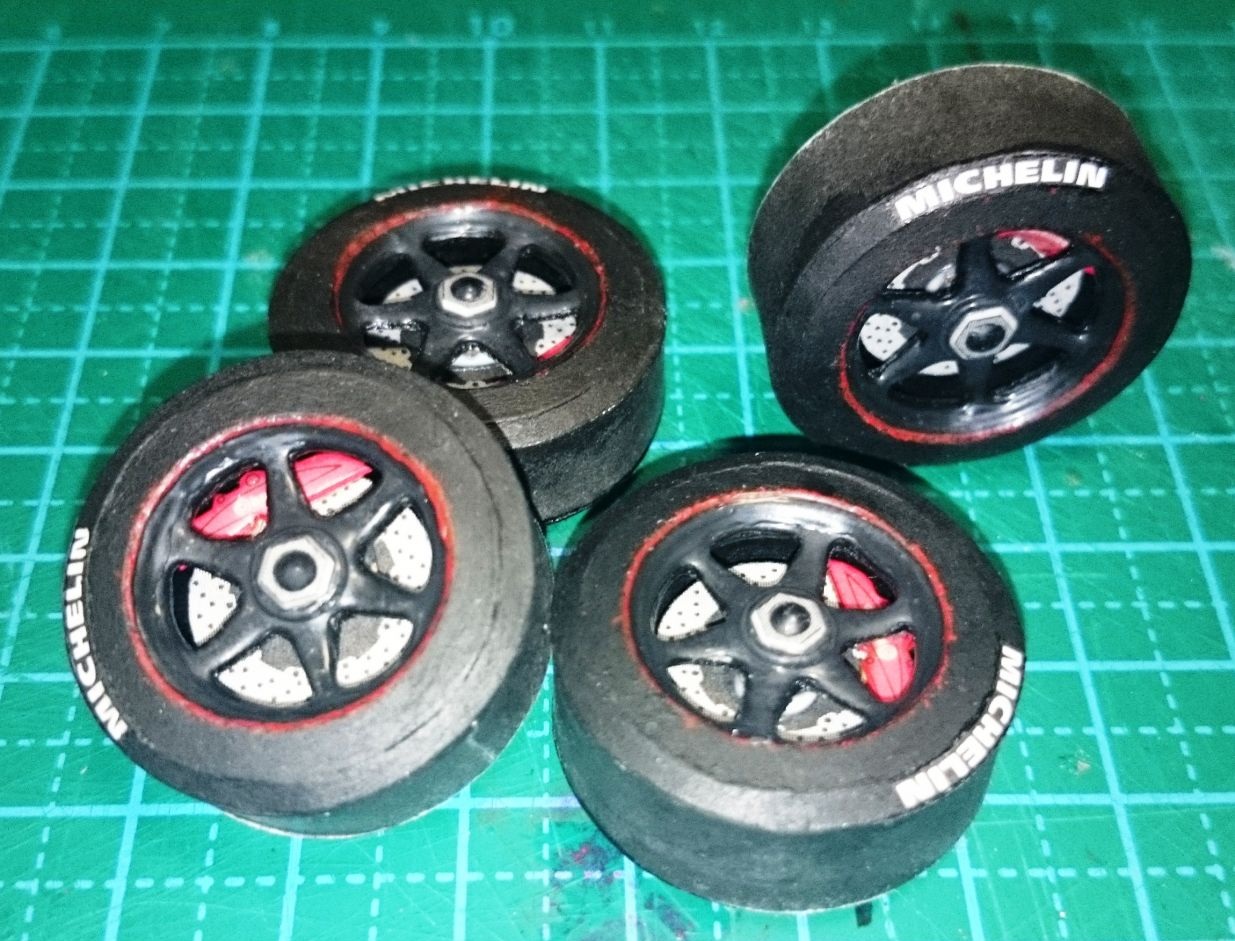 собрал колеса, но т.к. собираясь на работу забыл взять с собой рисунок протектора, то его изготовление и покраска колес откладывается вероятно на завтра.