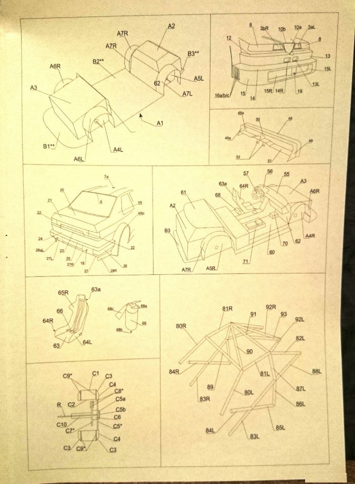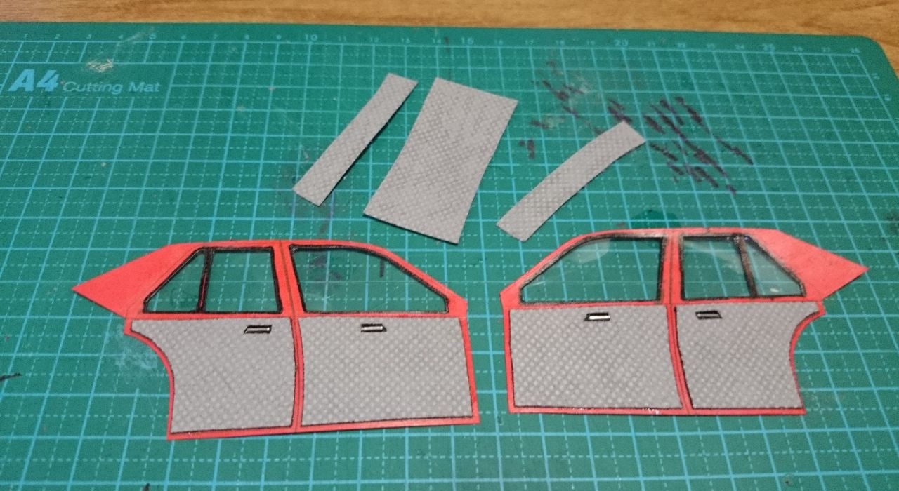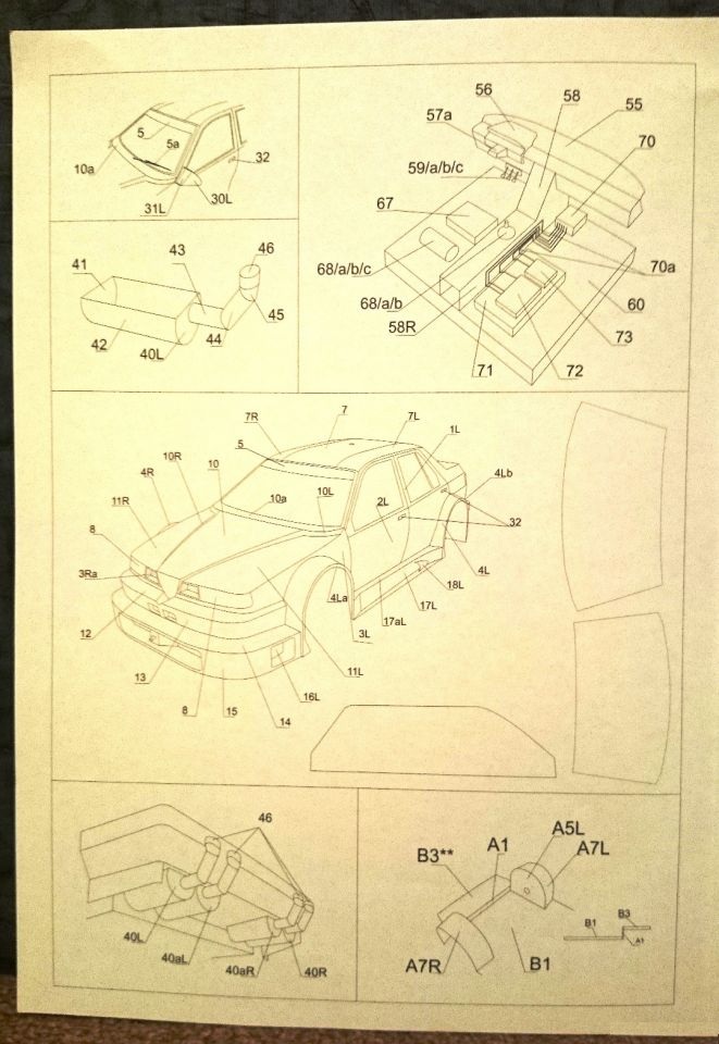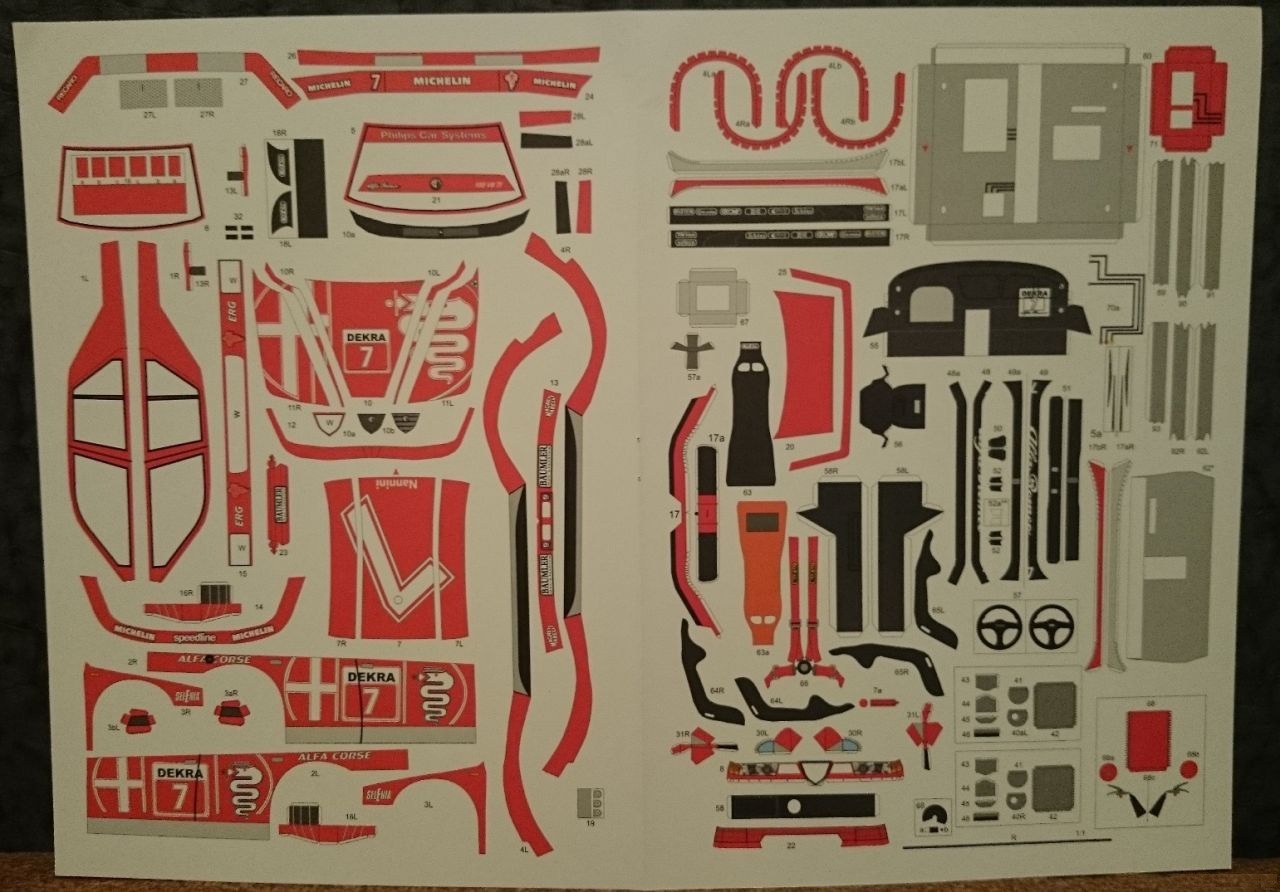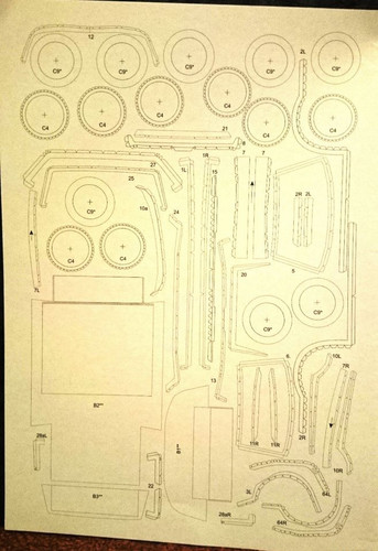 так же на такой же бумаги отпечатано несколько шаблонов для картона, а также подклейка с клапанами для некоторых кузовных деталей и шаблоны стекол