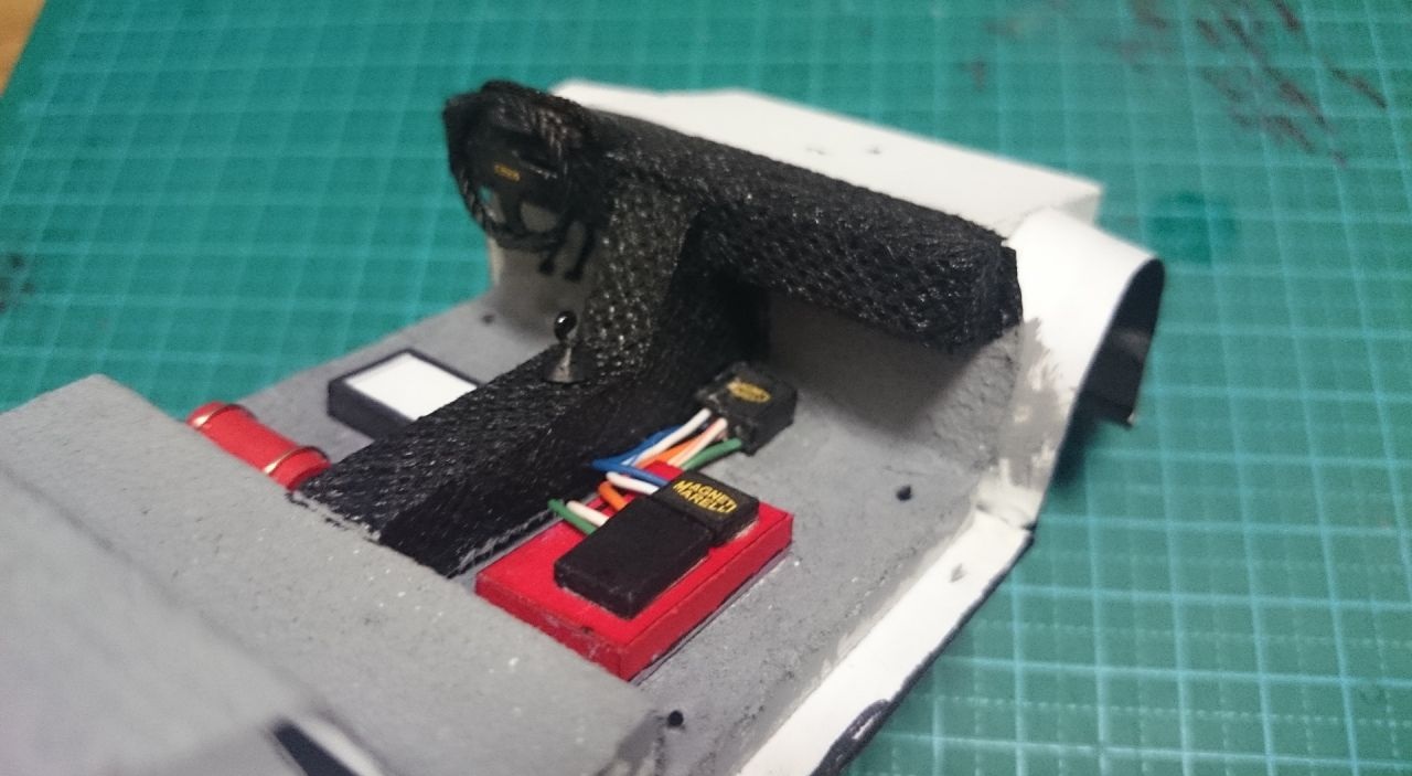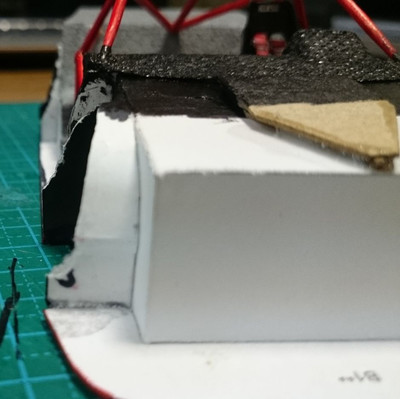 Внутри делал дополнительно обшивку салона, и вероятно изза этого еще проблемы получил. а так при осмотре мест соприкосновения еще внутренние подкрылки упираются в склеенные крылья и не дают кузову сесть ниже, вероятно я их немного не правильно склеил. думаю если их частично срезать, то кузов сядет. но это будет в следующем году.