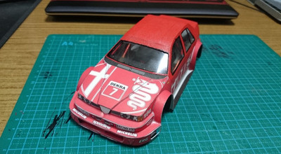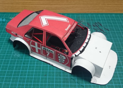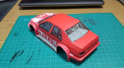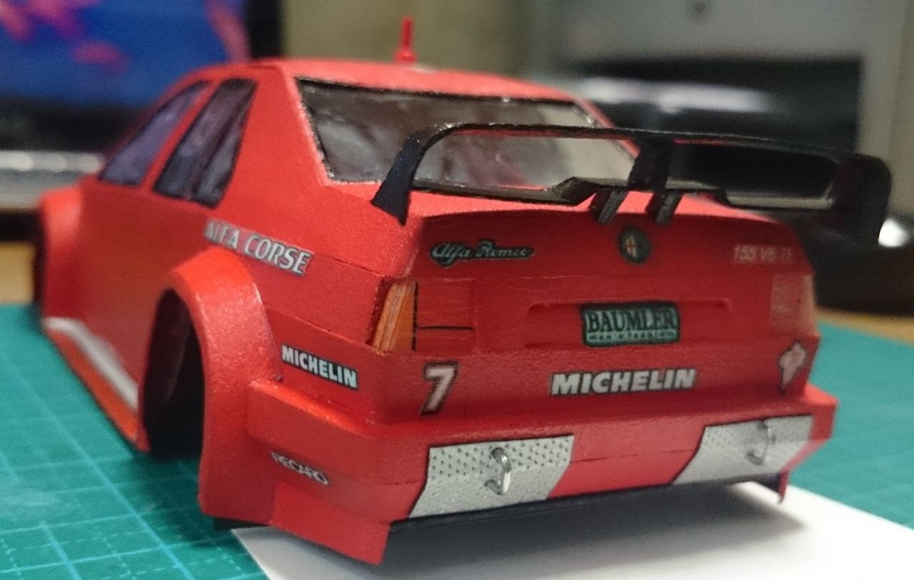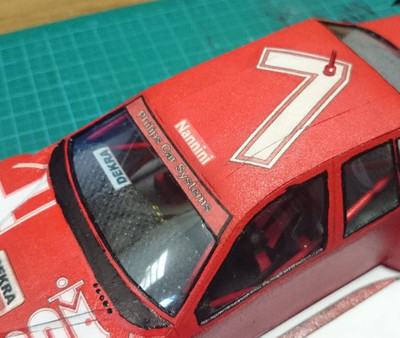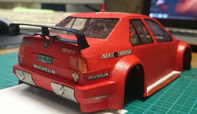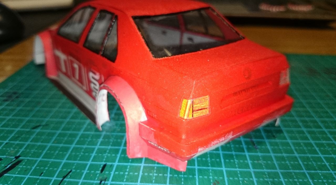 еще одно обновление на сегодня. состыковал кузов, под передний бампер немного нарастил обвес чтобы скрыть зазор. приделал антенну на крышу, спойлер на багажник ну и добавил наклеек на заднюю часть.