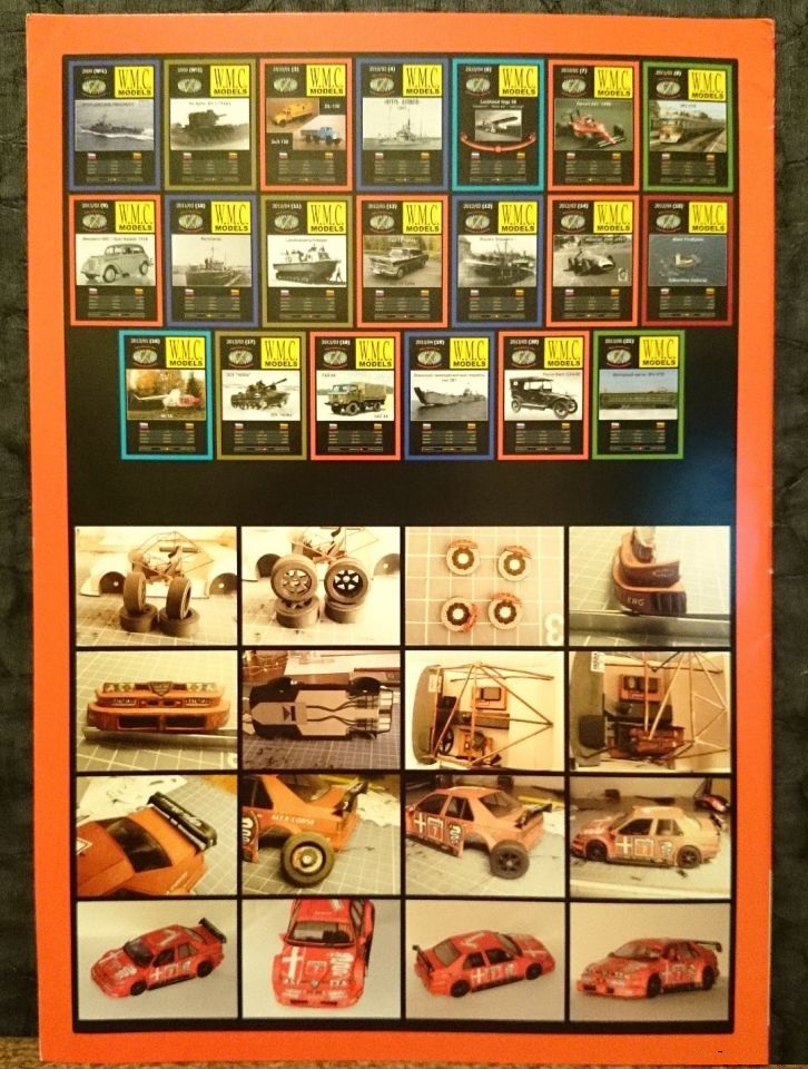 С обратной стороны в верхней половине напечатаны обложки ранее издаваемых журналов, в нижней части несколько фотографий из процесса сборки Alfa Romeo