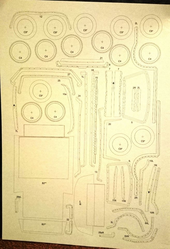 Выкроек не много, доработок так же много не планируется, из основного думаю переделать фары, так же будет покраска т.к. нужно будет маскировать стыки и заломы на местах сгибов. так же вероятно буду использовать какие либо сторонние от бумаги материалы.