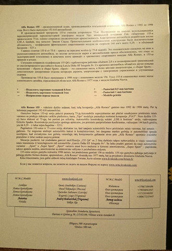 Сначала обзор журнала, и писать будем о Alfa Romeo 155 V6 Ti от издательства W.M.C. Models. (не трудно было догадаться исходя из названия темы