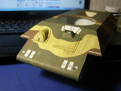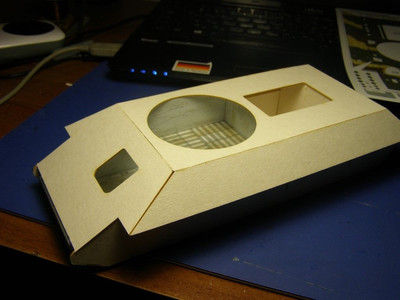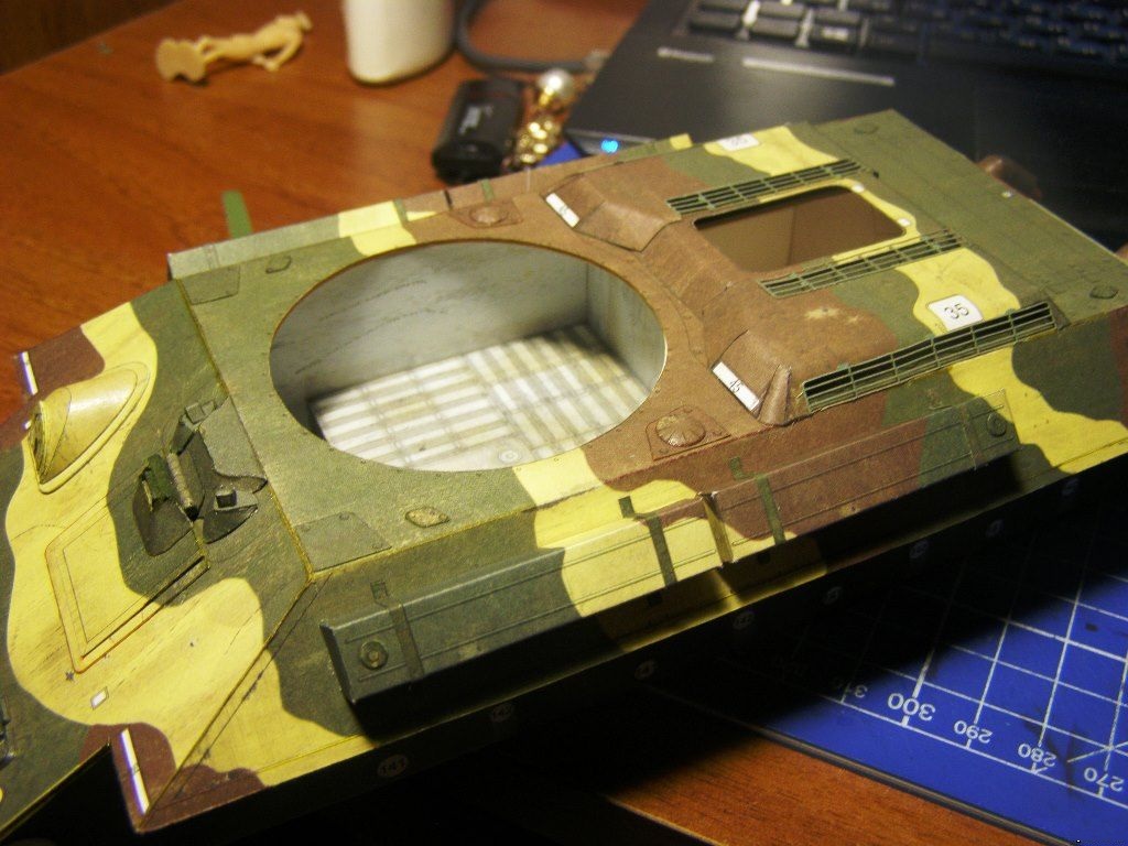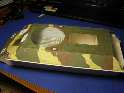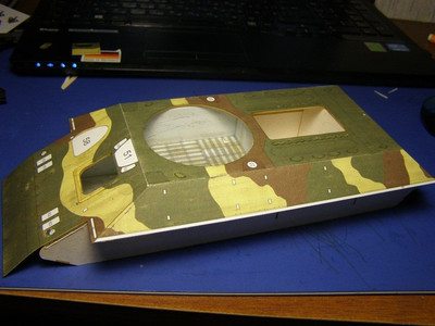 Разобрал верх каркаса и вклеил его по отдельности в шкурку. С люком тоже проблема, издатель напечатал внутреннюю часть люка на сторону приклеивания внешней обшивки.