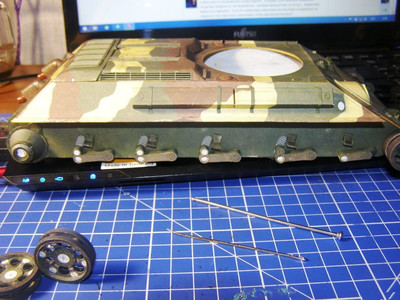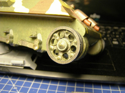Все, с ходовой война закончена. Колпаки катков сделаю в позже, т.к. кругорез забыл на работе.