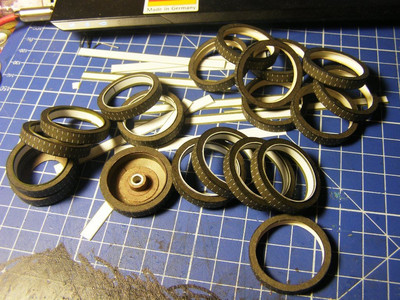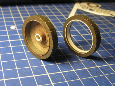 Сбираю катки. Несмотря на оригинал журнала, сходимость оставляет желать лучшего. деталь 151 длиннее 152, либо наоборот. Или внутренний диаметр бандажа меньше, чем 151. Последнюю деталь приходится коротить на 0,5 мм. Диск 150 в любом случае не входит в обод и еще его приходится укорачивать на 0,8 мм. Деталь 147 не входит в 150 и образуется ступенька.
